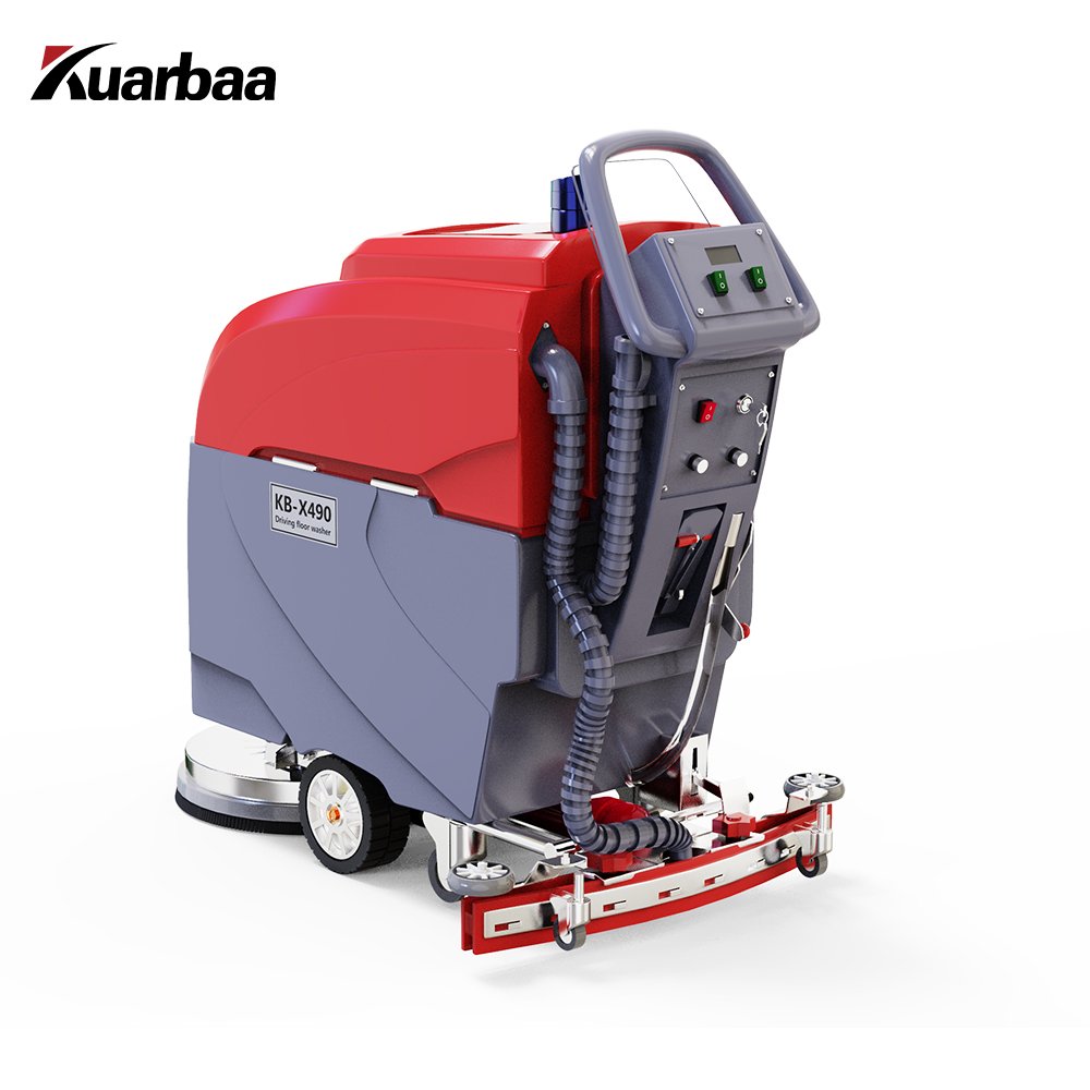 KB-X490 is a high-performance walk-behind floor scrubber designed for large-scale commercial and industrial cleaning. Equipped with dual motors, it integrates spraying, scrubbing, and vacuuming in one machine. Ideal for use in supermarkets, hotels, airports, hospitals, and factories. The unit features a German control system and a new maintenance-free battery, delivering high efficiency, quiet operation, and extended runtime. With a 50L clean water tank and 55L sewage tank, it ensures long-lasting continuous operation. The all-steel chassis is highly durable and corrosion-resistant, while the solid rubber tires provide excellent wear resistance. KB-X490 is a professional-grade cleaning solution that combines reliability and performance.