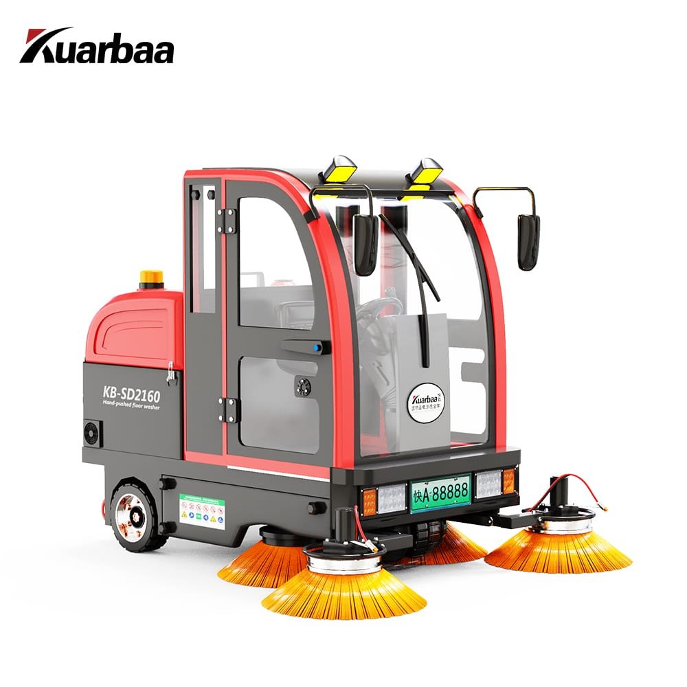 KB-SD2160 is a new type of double-suction driver-type fully enclosed floor sweeper, which is suitable for use in cold and harsh environment. It adopts advanced vacuum filtration system and has the functions of road surface cleaning, high-pressure washing, spray and dust removal. It is suitable for cleaning operations such as urban road / highway / square / airport / wharf / tunnel / bridge / separation wall avoidance / kerb mechanization cleaning / cleaning / spray dust reduction.